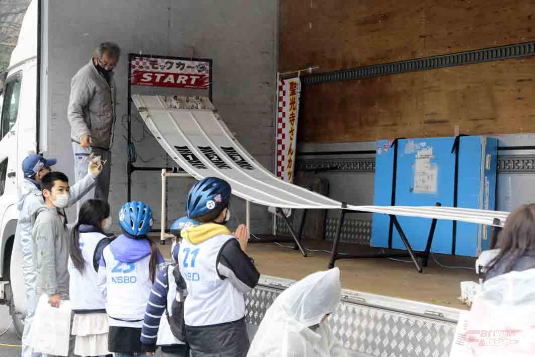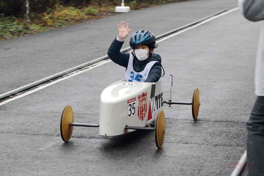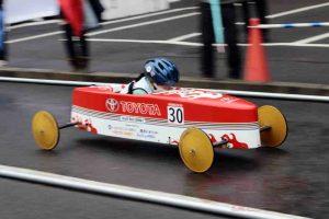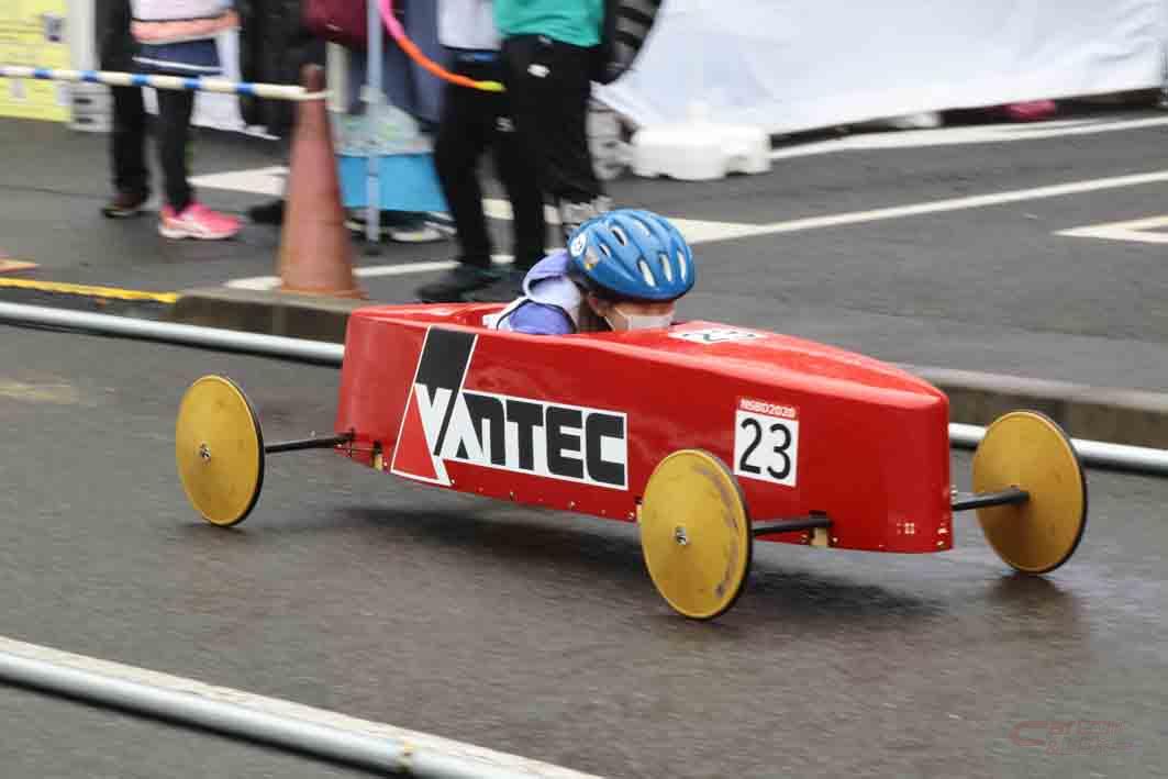 このソープボックスダービーは、20世紀初頭にアメリカで発祥したもので、子供達が石鹸を運ぶ木箱にタイヤを付け、坂道を下って遊んだのが始まりという。動力源を持たない、子供向けカートレースとして親しまれてきた。日本では8歳~13歳の男女(身長:120㎝~150㎝程度、体重50㎏)が参加できる。