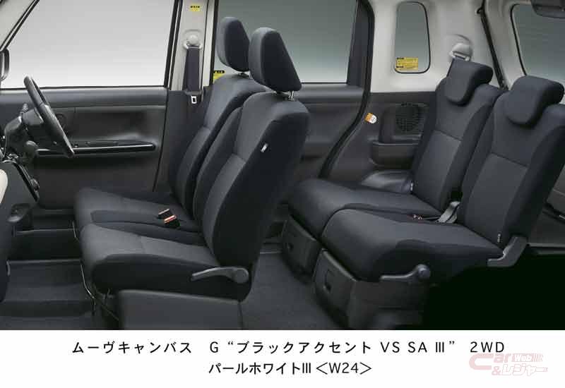 今回は、インテリアやエクステリアにアクセントカラーを施した「G“メイクアップ リミテッド SAⅢ”」、「G“ブラックインテリアリミテッド SAⅢ”」をベースに、ウォームパックを標準装備するなど4つの特別仕様車“VSシリーズ”を設定。また、「G“ブラックインテリアVS SAⅢ”」、「G“ブラックアクセントVS SAⅢ”」では本革シフトノブを採用し、抑えた価格設定とした。