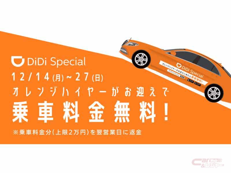 DiDiモビリティジャパンは、2020年12月14日(月)より東京都一部エリアにおいて、2週間限定で「オレンジハイヤー」3台を限定配車するキャンペーンを実施すると発表した。「オレンジハイヤー」は、その名の通り車体全体にDiDiのブランドカラーであるオレンジ色を施したハイヤー車両となり、期間中に「DiDi」アプリ内で配車依頼時に「DiDi Special(ディディスペシャル)」を選択・利用時に「オレンジハイヤー」が迎えに来た場合、対象の乗車料金分が無料となるキャンペーン。(翌営業日に返金、上限2万円/回)