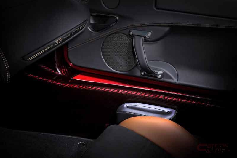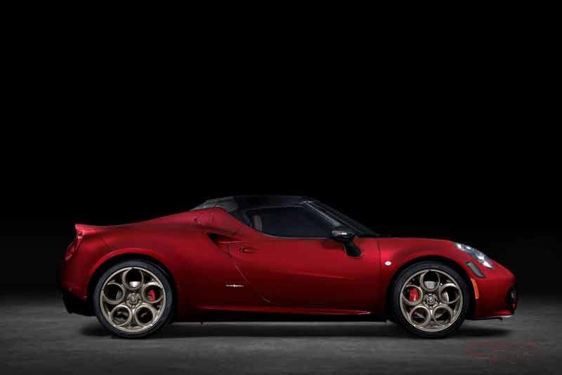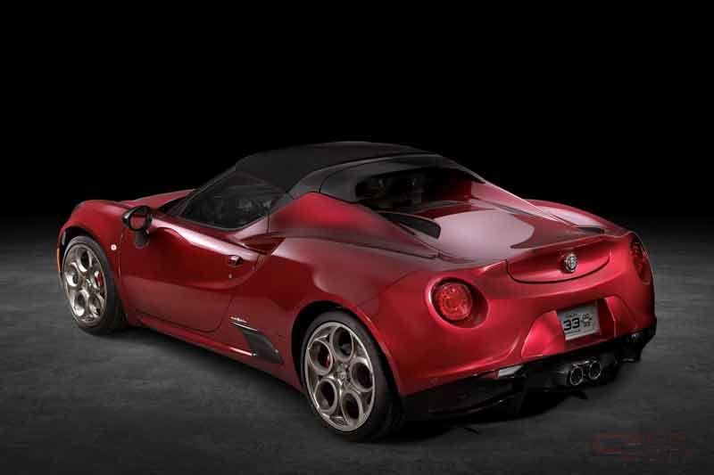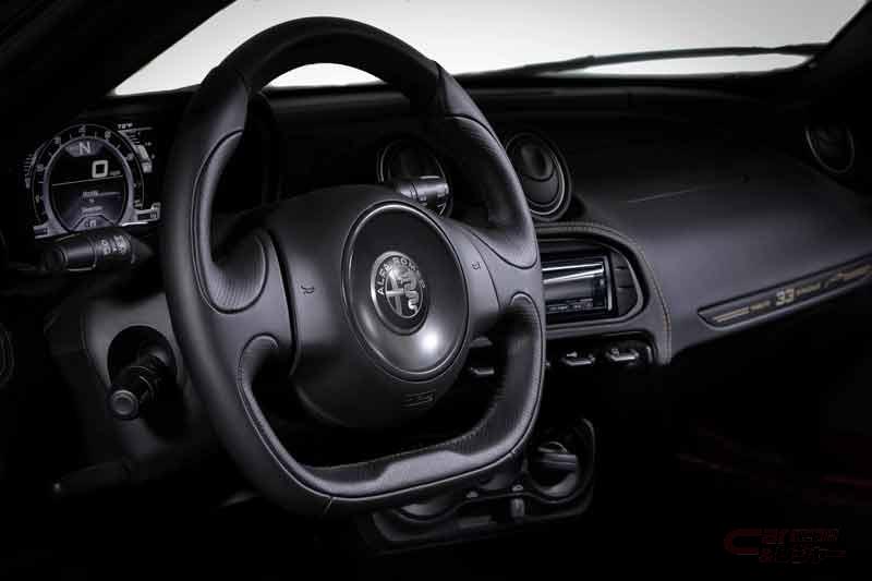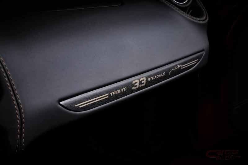 「4C Spider 33 Stradale Tributo」は、3層コートが施された専用カラーのロッソ・ヴィラデステが採用され、グレー/ゴールド5穴アルミホイール(フロント18インチ、リア19インチ)、ブラックDinamica®スエードとタバコ・レザーを組み合わせたスポーツシートを装備している。コックピットには、ダッシュボード、サイドシル、センターコンソールに専用プレートを装着し、センターコンソールのプレートには車両のシリアルナンバーも刻印されている。また、チェントロ・スティーレ(デザインセンター)によってデザインされた、4Cのデザインコンセプト、テクノロジー、素材、モデナの組み立て施設、33 Stradaleの歴史を記録した記念ブックも付属している。記念ブックにはDinamica®スエードによる装丁が施され、シリアルナンバーが印刷されている。