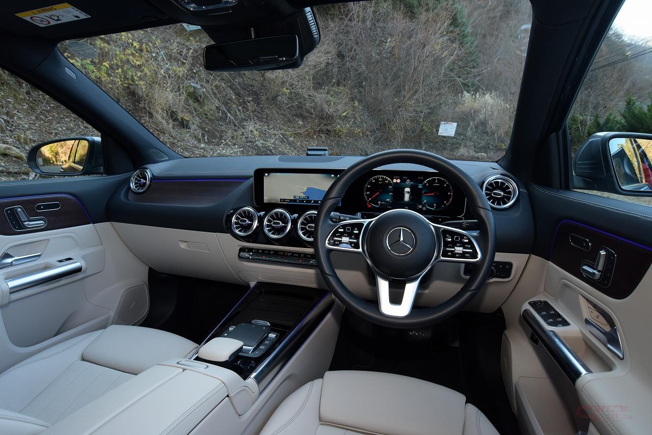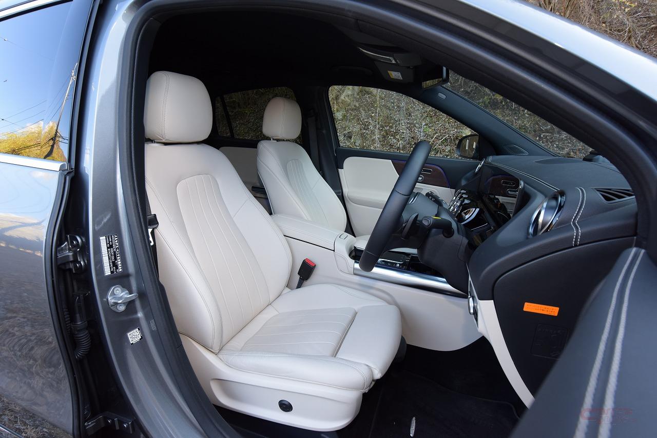 GLBと同様に、本革の運転席と助手席シートは張りのあるタイプで、運転姿勢が崩れることもなく、長距離を運転しても疲れを感じにくかったのが印象的だ。