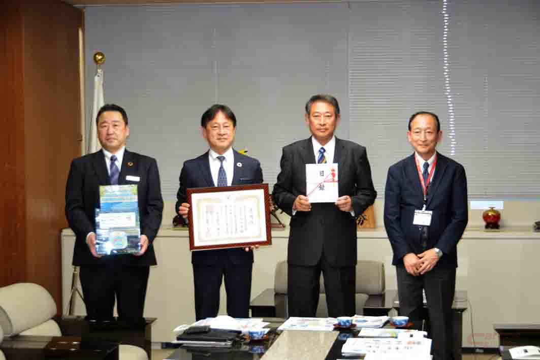 同日、杉並区役所で寄付金の寄贈式が行われ、同社片山社長から杉並区・田中良区長に目録が手渡され、杉並区からは同社に感謝状が贈られた。