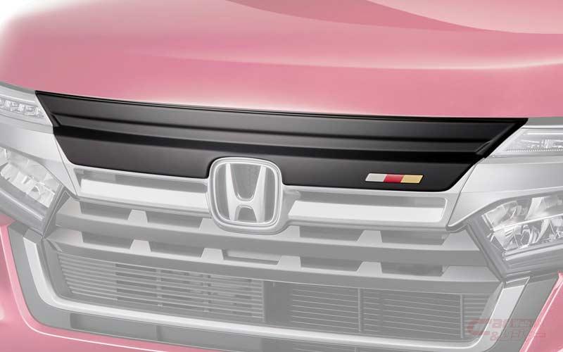 「N-BOX」用無限パーツは「WILD&SPORTS」をコンセプトに開発。エクステリアには、「N-BOX Custom」用に無限のコーポレートカラーである「赤・白・金」の3色エンブレムをあしらったフロントグリルガーニッシュや、フロントロアスポイラー・サイドスポイラー・リアバンパーガーニッシュの各種エアロパーツを始め、ボディサイドに貼付するドアサイドデカールを設定した。