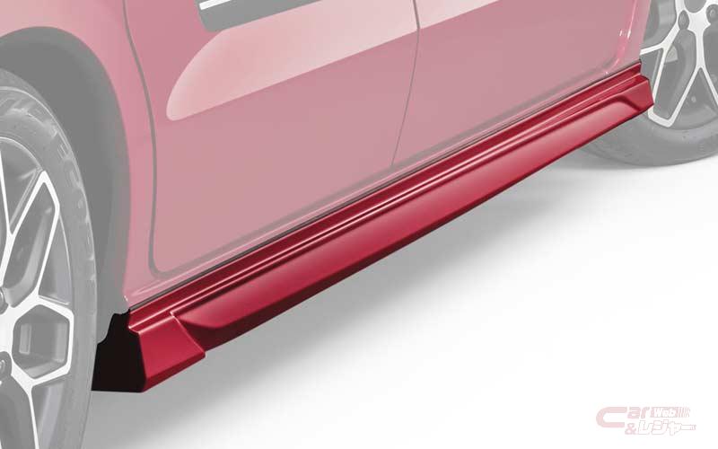 - サイドスポイラー:サイドのスタイリングを引き立てるサイドスポイラー。標準装備のサイドシルガーニッシュを取り外して装着。真空成型のABS 製。左右セット。