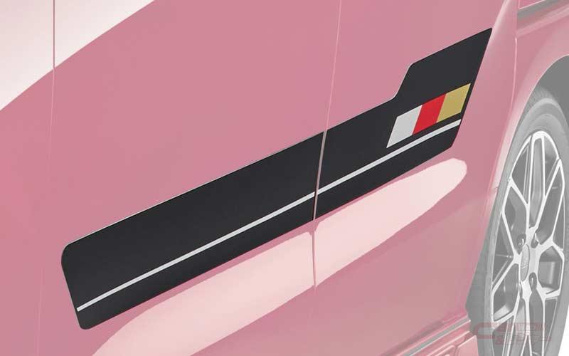 - ドアサイドデカール」:ボディの慈雨系やプレスラインに合わせデザインし、無限のコーポレートカラーをあしれあったドアサイドデカール。1台分左右セット。