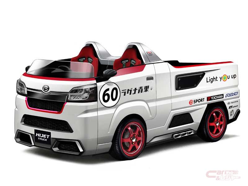 - 同じく軽商用車「ハイゼット」 をベースに、果樹園で実際に改造して使われている“屋根を切った”軽トラックから着想を得てレース仕様にカスタマイズした「ハイゼット ジャンボ スポルツァVer.」