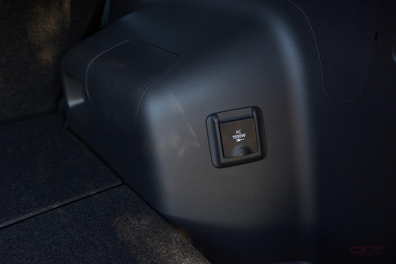 さらに、ラゲッジルームには1500WのAC100V電源が備えられており、バッテリーとエンジンでの発電を組み合わせれば最大で一般家庭における約10日分の電力供給ができるので、万が一の備えとしても有効だ。