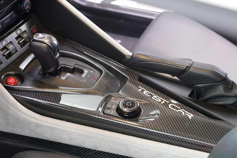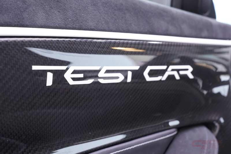 今回展示するテストカーは、主にボディやリアウィング、カーボンパーツなどエクステリア各所の剛性・耐久テストのために、サーキット走行で使用した車両となる。