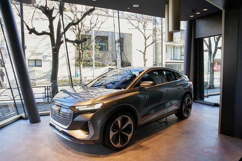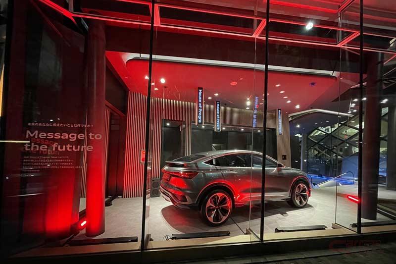 また、2階ラウンジは来場者がくつろげるスペースとなっており、サステイナブル素材に留意したドリンクなどを提供するほか、LINEを使った「未来の自分へのメッセージ」を送るサービスも実施する。さらに、他ブランドとのコラボレーションイベントや、コンセプトカー等の展示も予定しており、グランドオープン時には「Q4 Sportback e-tron concept」を、その後「e-tron GT」を展示する予定となっている。