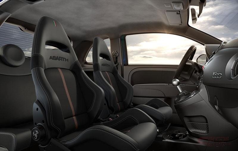 エクステリアでは、フィアット600をベースとする’60年代のコンペティションモデル「フィアット・アバルト1000TCR」にインスピレーションを受け、それに現代風の解釈を加えた大型のリアルーフスポイラーを装備。ウイングの角度は最大60度まで調整可能で、速度域に応じてダウンフォースの強弱を設定できる。