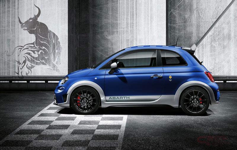 限定車「Abarth 695 Anno del Toro」は、Abarth(アバルト)の高性能モデル「595 Competizione(コンペティツィオーネ)」(左ハンドル・MT)をベースに、大型リアルーフスポイラーをはじめとする数々の特別装備を採用。モータースポーツに情熱を注ぎ、自由な発想から数々の刺激的なモデルを生み出した創始者カルロ・アバルトのクルマ作りの哲学が反映されているという。
