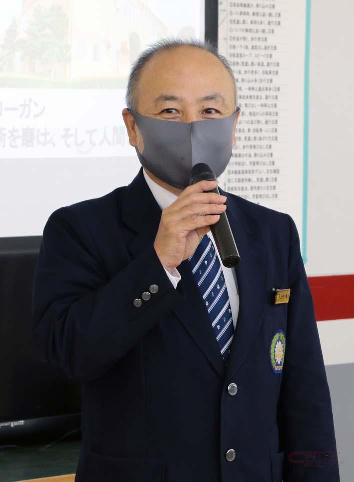 納車式で上田校長は「政府の“2050年カーボンニュートラル宣言”により、環境車に対する注目がますます高まっていく。その中、新型ミライを導入することで、学生の新技術に対する興味を少しでも高めたい。新技術に触れ、興味を持ってもらい、少しでも基礎知識を持つことが卒業後、その知識をさらに高めることにつながる」と、導入の狙いを説明した。