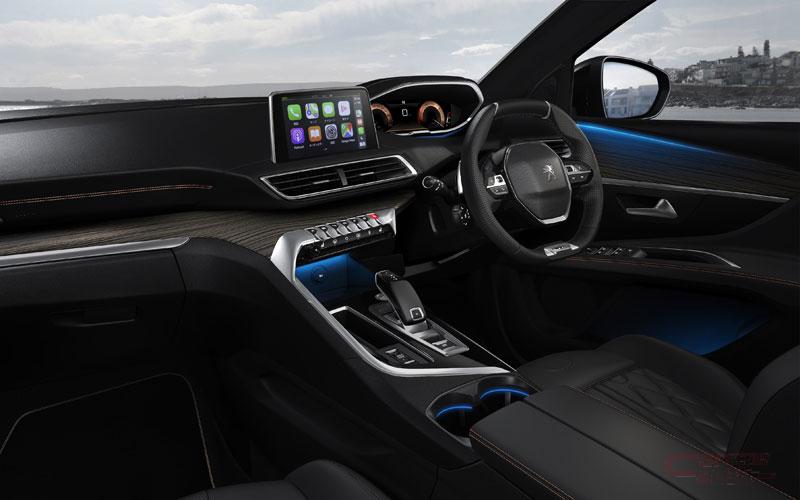 インテリアにおいては、自動車におけるUI/UXの革新、PEUGEOT i-Cockpit®を引き続き採用。i-Cockpit®は、小径ステアリングホイールを使うことでステアリングの上からメーターを確認することによる視線移動距離の減少、肘が下がり脇を締めたコンパクトなドライビングポジションによるステアリング操作の少ない動線などを実現している。