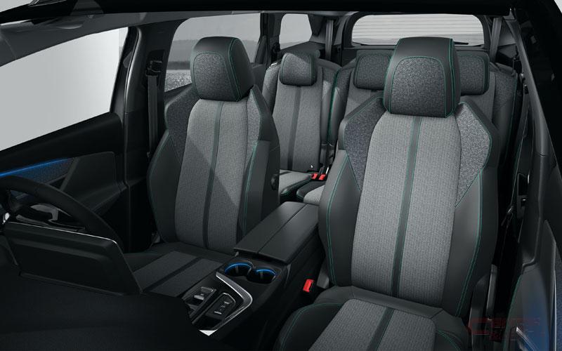 すべてのグレードのシートを刷新し、視覚的にはよりモダンに、体感的にはさらに快適になった。GT(ディーゼルおよびガソリン)にはアルカンタラ®&テップレザーのダークグレー基調の表皮を使用し、フロントシートヒーター、運転席メモリー付きパワーシートとマルチポイントランバーサポートシートとなっている。Allure BlueHDiおよびAllureにはファブリック&テップレザーのダークグレー基調を採用。また、GTに設定されるレザーパッケージオプションでは人気のナッパレザーシートを継続し、あたらしくウッドパネルにオープンポア(木材の持つ自然な導管の質感を生かした仕上げ)のダークライムウッド(アオイ科の樹木で日本ではシナノキに近似)を用意している。