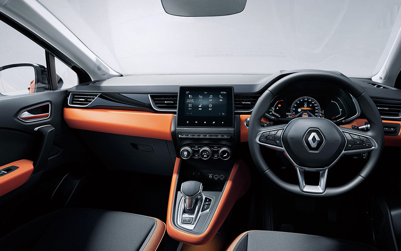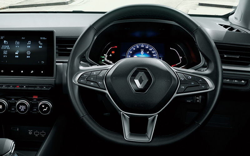 また、ダッシュボード、ドアパネル、センターコンソールの側面などに高品質なソフト素材を配し高い知覚品質を実現したほか、新しい素材の防音材の採用や、エンジンルームとの間への防音材の追加、フロントガラスへの防音フィルムの追加、シーリング方法の見直し等により、静粛性も大きく向上している。レザーステアリングは、先代ルノー キャプチャーに比べて小さなエアバッグシステムを採用したことでセンターパッド部を小型化し、メーター類の視認性を向上。ステアリングのスポーク上には、運転支援システムやインフォテインメント機能の音声入力が操作できるスイッチが分かりやすく配置され、ドライバーは前方から目を離すことなく、運転支援システムの切り替えや、7インチ デジタルインストゥルメントパネルの画面切り替え、ハンズフリー通話へのアクセスが可能となっている。ステアリングホイールはマットクロームフィニッシャーで装飾され、ステアリングヒーターを内蔵し、よりスポーティなマニュアルでのギアチェンジが楽しめるパドルシフトも装備している。