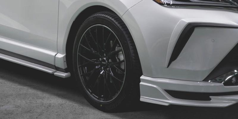 今回発売するアルミホイール「TH05」は、グロスブラック&リムポリッシュの上品なコントラストとレーシーテイストのクロススポークにより足元が美しく引き締まり、装着車をラグジュアリー&スポーティに演出する。