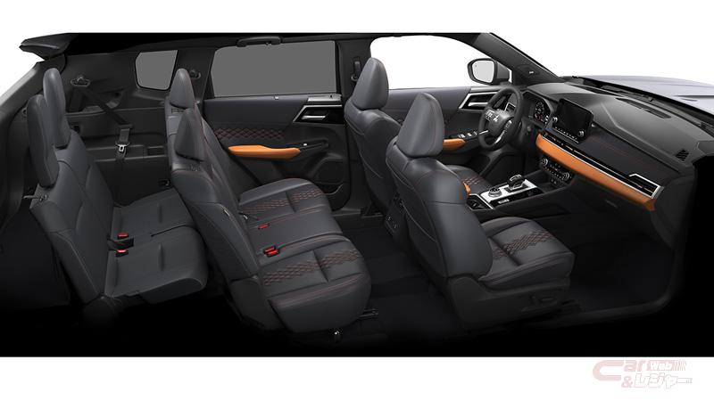 格納式3列シートを搭載する7人乗りファミリーSUVとして乗車人数や荷物に合わせて多彩なシートアレンジが可能。可倒式のセカンドシートはスライド及びリクライニング機能に加え、4:2:4分割タイプとなっている。