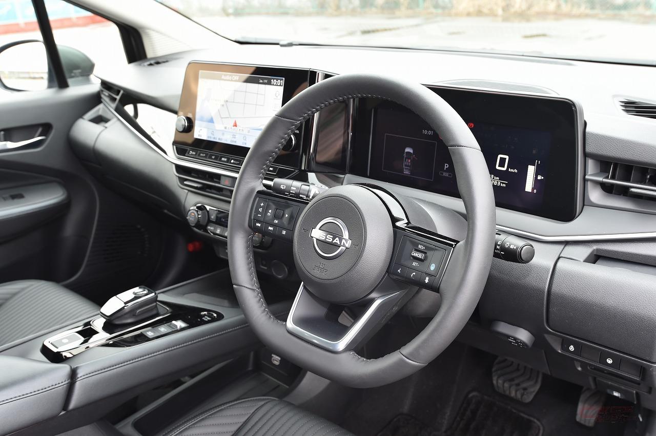 また、先代ではワンペダルで停止までできたが、新型では時速約5kmでクリープ走行になることも変更点。停止まで行うのは未来感があり電動車らしい演出だが、従来のe-POWERでは特に駐車時に煩わしさを感じていたので、クリープが発生する新型の制御の方が扱いやすさは上回る。