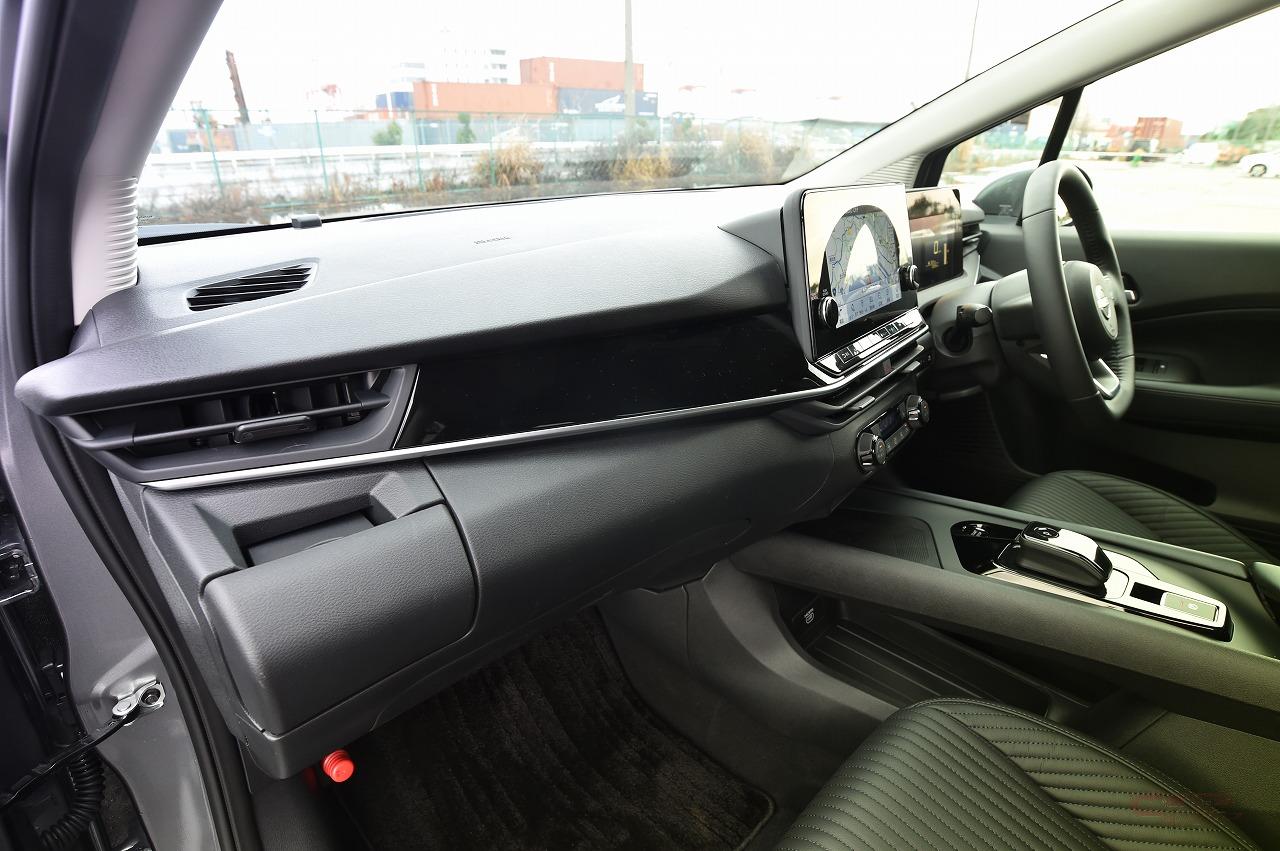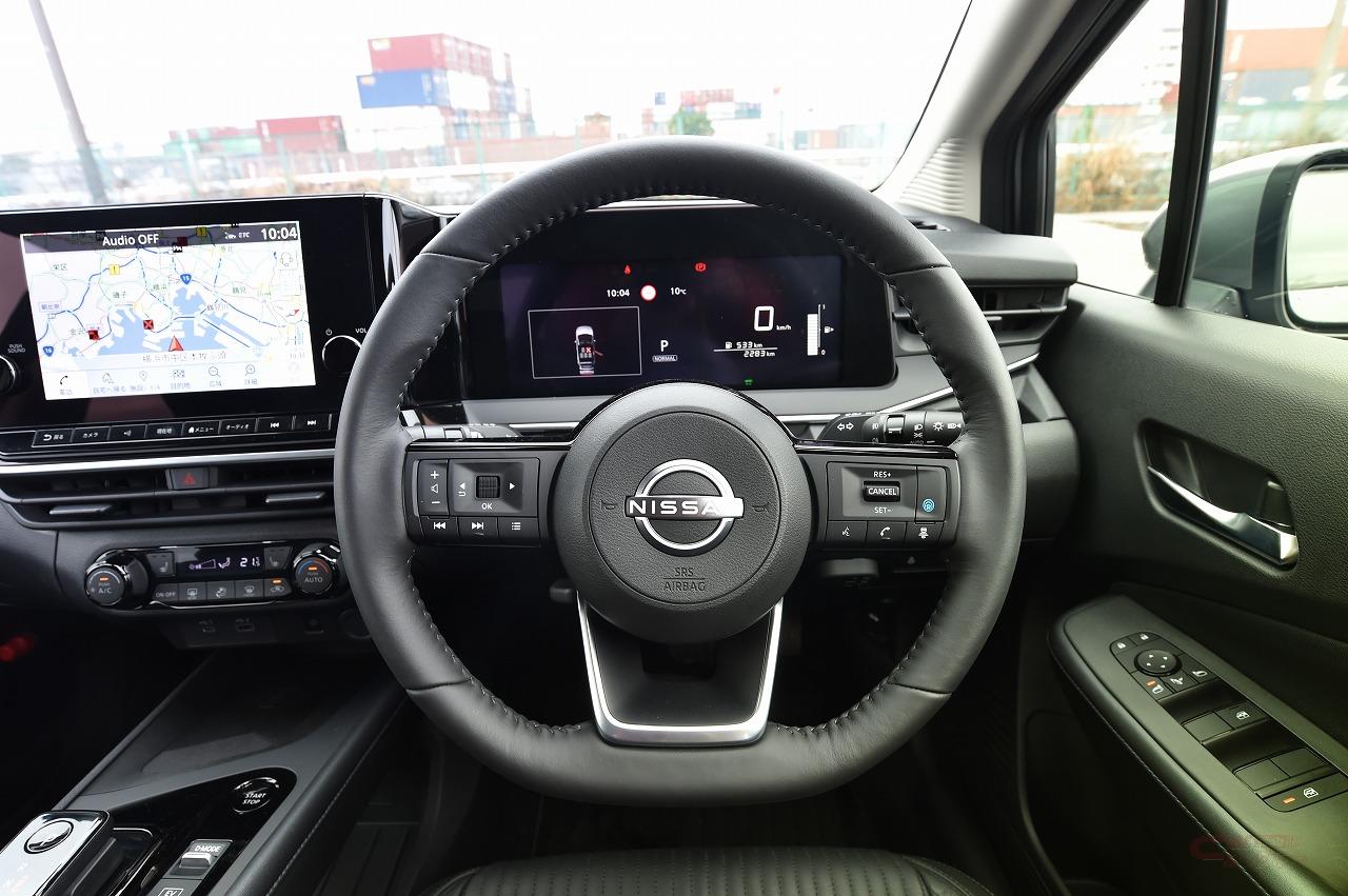 e-POWERと言えばワンペダルドライブが持ち味の一つだが、新型は加速でのアクセルの踏み込み加減に応じた過不足ない走り、唐突さのない減速を実現しており、このあたりの質感の高さに進化を感じた。特に減速時の唐突さは車酔いにもつながる一つの要因だが、新型ではワンペダルでも自然な感覚となっていた。