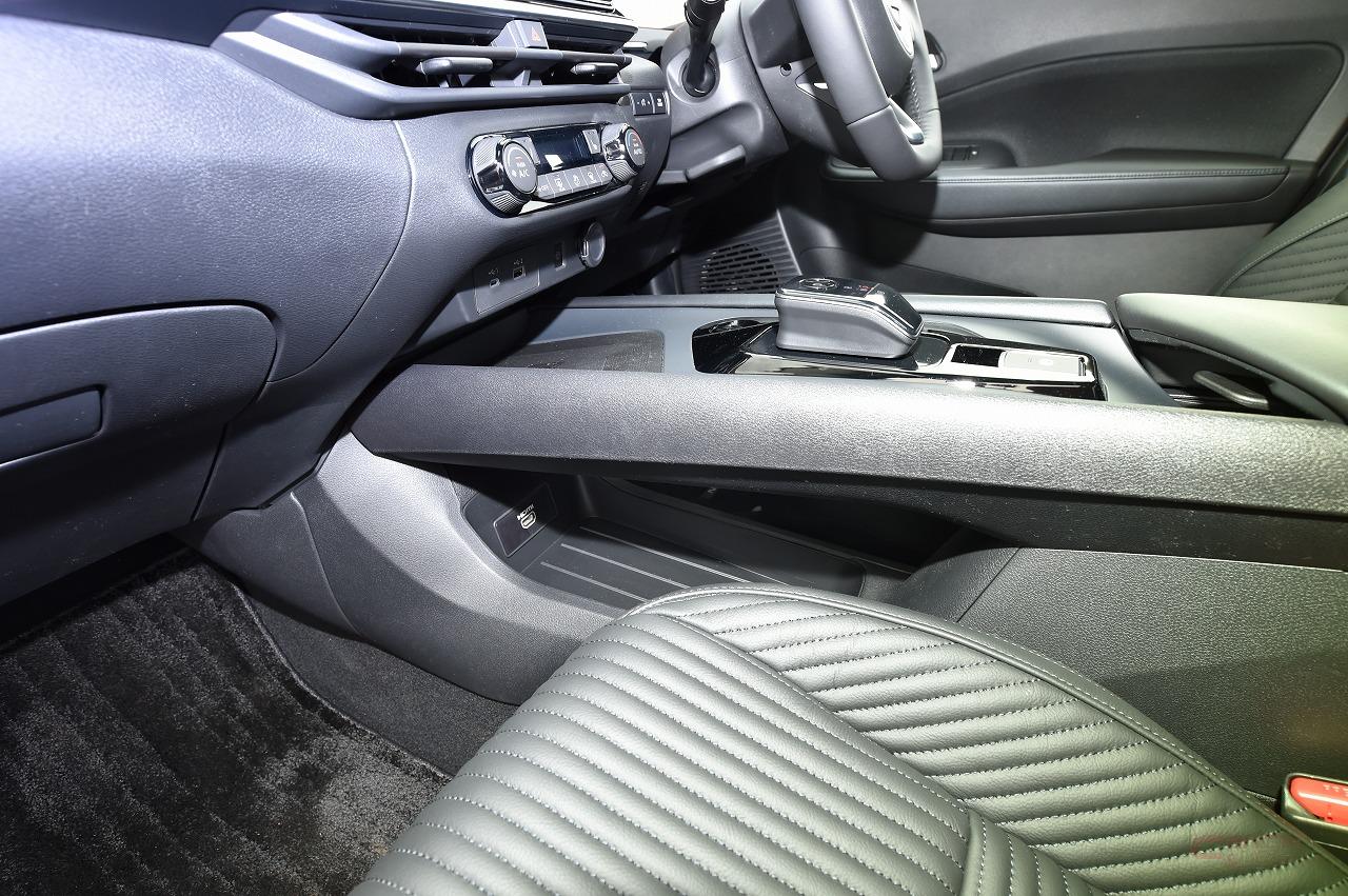 インテリアは、運転席のメーターパネルとナビ画面が、バイザーレスで並列に配置されたインパネ周りの造形が特徴的。さらに、水平基調のロングコンソールを採用することで、コンパクトカーと感じさせないワイドかつ見晴らしの良い視野を実現している。