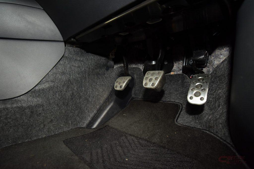 6速MTのシフトレバーはフロアに配置。シフトフィールは重厚さを感じさせるが繋がりにくくいということも無く、試乗を通じて扱いにくさは感じなかった。足元の窮屈感もなく、クラッチはリッターカーのスポーツカーに比べるとやや重たさを覚えたが、ポイントを掴めばクラッチミートも容易であった。