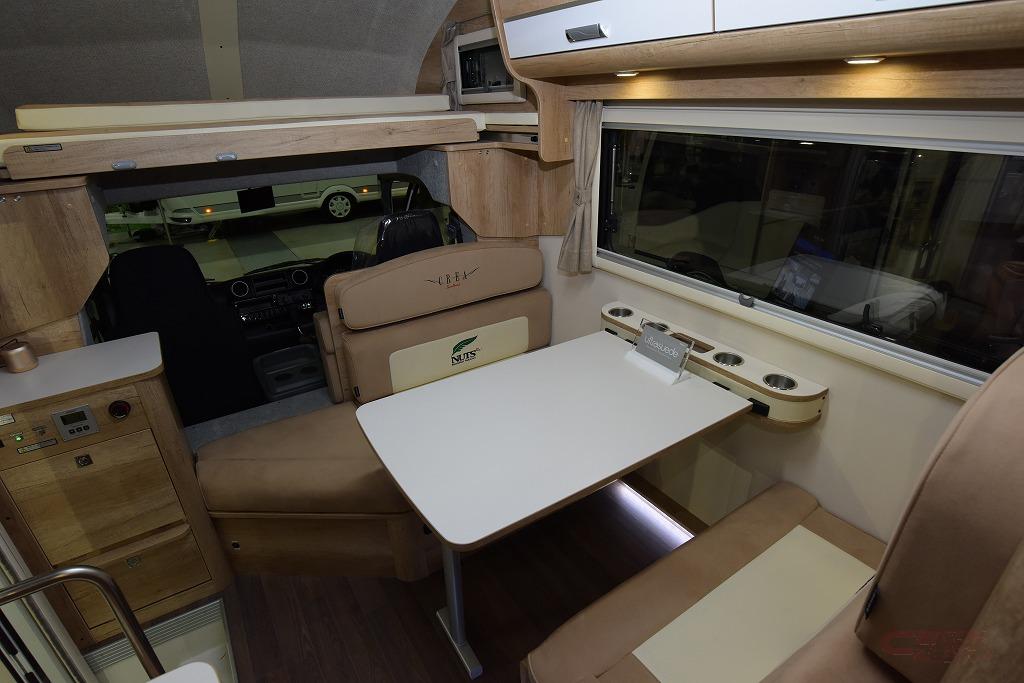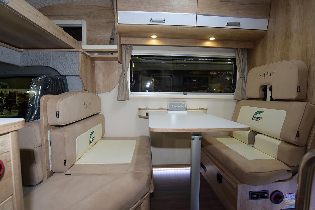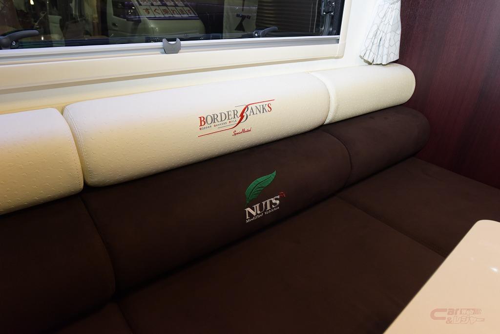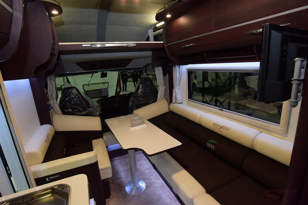 このウルトラスエードエディションは、フラッグシップのバスコン「ボーダーバンクス」、キャブコンの上位モデル「クレア」に設定され、現時点では今回の名古屋キャンピングカーフェアのみでの限定販売となる。