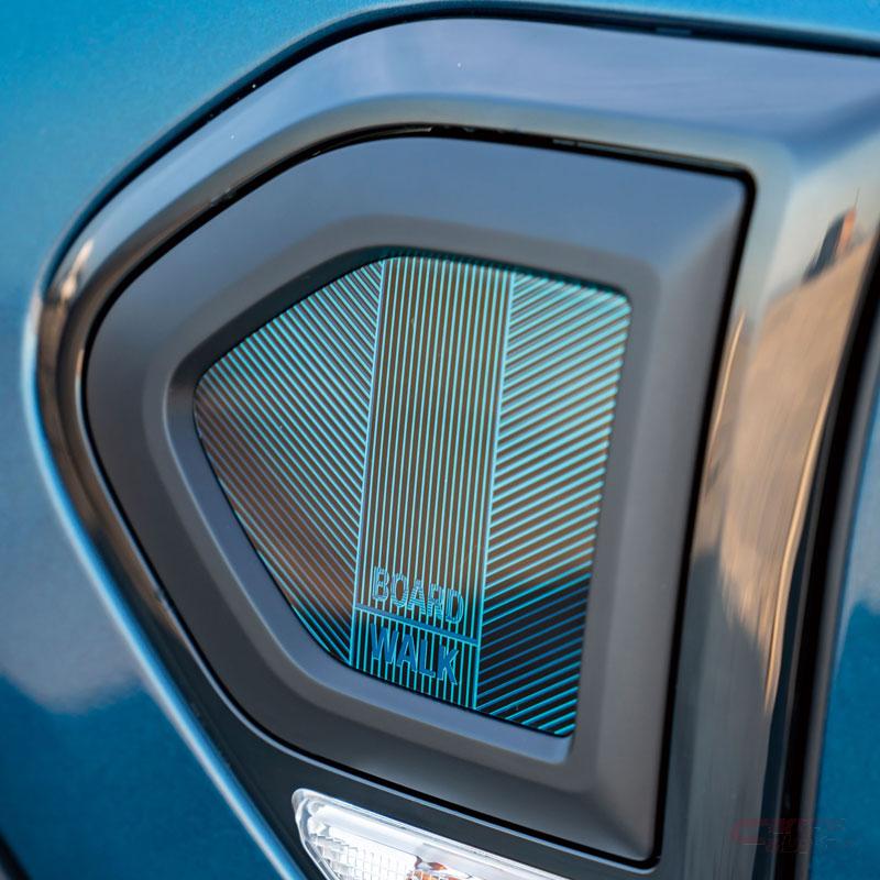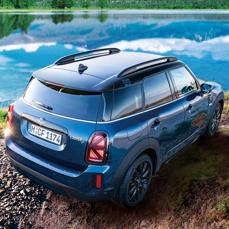 エクステリアには、MINI Crossover初導入となる、深い湖の色、水辺の空を想起させる特別なブルーの限定色「ディープ・ラグナ・ブルー・メタリック」をボディ・カラーとして採用し、スポーティーな18インチ・ブラック・ホイール、ブラック・ルーフレール、ピアノ・ブラック・エクステリア、BOARDWALK専用ルーフ・ステッカーや専用サイド・スカットルを組み合わせることで全体を引き締め、力強くスタイリッシュなデザインとなっている。内装には、BOARDWALK専用ステッカー付インテリア・サーフェス・ピアノ・ブラック、専用シート・クロス/レザレット・ブラック・パール、マルチ・ディスプレイ・メーター・パネル、BOARDWALK専用ドアシル・プレートを特別装備している。