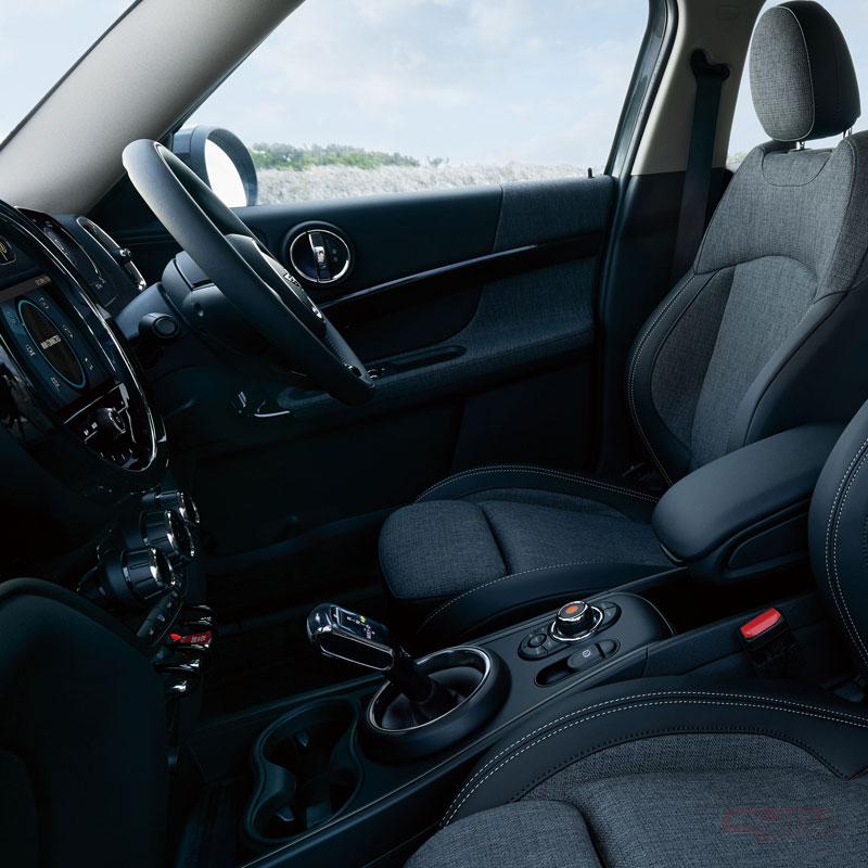 運転支援システムであるストップ&ゴー機能付アクティブ・クルーズ・コントロール、前車接近警告機能、衝突回避・被害軽減ブレーキ、視認性を高めるLEDデイライト・リング、アダプティブLEDヘッドライト、LEDフロント・フォグ・ランプなど、充実した安全装備を搭載。またナビゲーション・システムは、タッチ・パネル機能と共に、MINIコントローラーにより手元でも操作可能なほか、速度やナビ情報などを前方の道路に視線を向けたまま視線を下げることなく確認することができるMINIヘッドアップ・ディスプレイや、リアビュー・カメラ、パーク・ディスタンス・コントロール(フロント&リア)、縦列駐車をサポートするパーキング・アシストなどを特別装備している。
