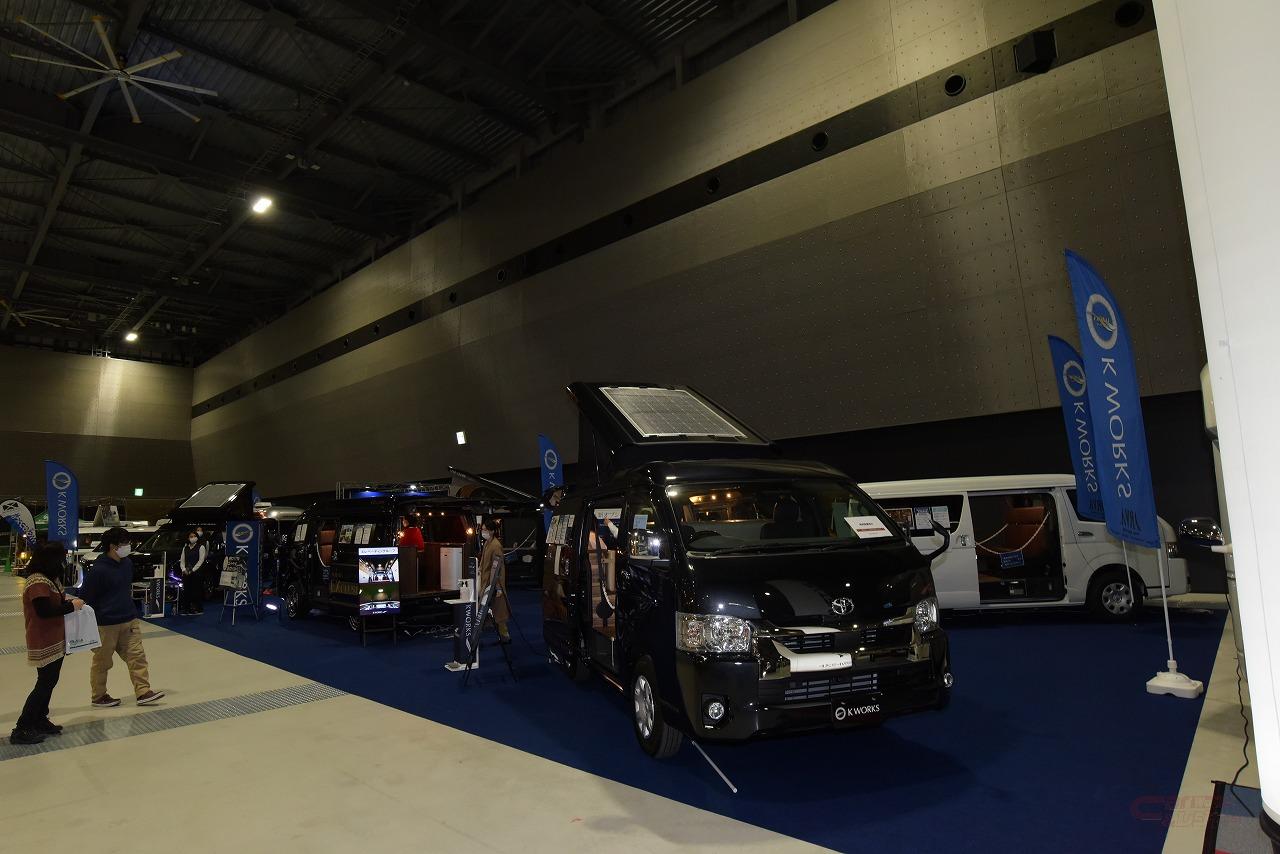 ジャンパンキャンピングカーショーが4月に延期されたため、このイベントが今年初の大型ショーとなり、東海地方に拠点を置くケイワークス (愛知)や、ダイレクトカーズ(三重)を初め、ナッツRVなども新型モデルや限定車を相次いで発表。各社のブースは、見学者で賑わいを見せた。