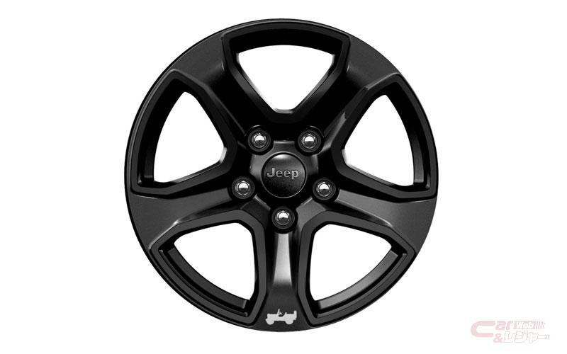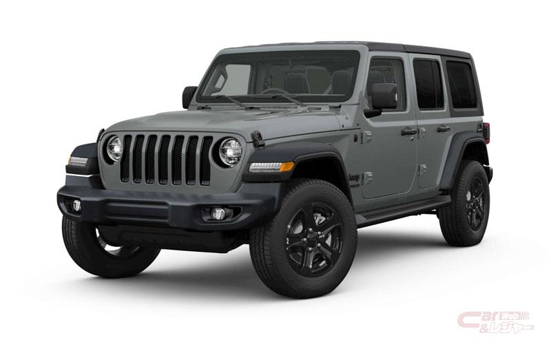 限定車「ラングラー・アンリミテッド・スポーツ・アルティテュード」は、エクステリアにおいては、ジープのアイコンであるセブンスロットグリルやヘッドライトベゼル、フォグランプベゼルに艶感のあるグロスブラック仕上げを施したほか、ホイールもグロスブラック仕上げの専用タイプを採用。さらにマットブラック仕上げのJeep バッジやTrail Ratedバッジを採用している。ボディカラーは、80周年限定車のカラー投票で2位に選ばれたスナッズベリーP/C(限定100台)と、通常は「ルビコン」のみに設定されるスティンググレーC/C(同100台)、人気のブライトホワイトC/C(同100台)の3種類を設定し、いずれもブラック内装(ファブリックシート)が組み合わされる。