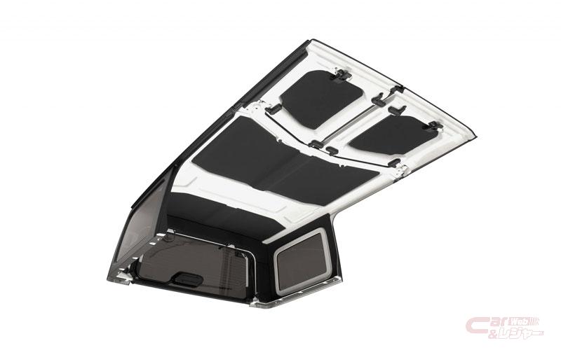 内装は、グロスブラック仕上げのインストルメントパネルにより外装とのコーディネートが図られると共に、夏には断熱効果、冬には保温効果を発揮するMopar製ハードトップヘッドライナーを採用することで質感と快適性を向上した。