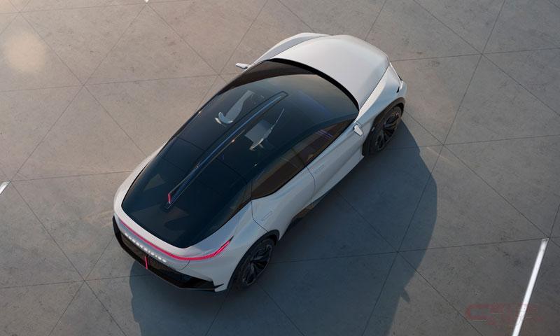 - 進化するLEXUSのデザインを示唆するスタディーモデルとして、プロポーションに根差したシンプルで艶のある造形と独自性のあるデザインを目指して開発。具体的には、EVならではの低いノーズから後方にピークを持たせた滑らかなキャビンを中心に、連続するシルエットで全体のフォルムを構成。高出力モーターの力を路面に伝える大径タイヤを4隅に配置し、低重心でワイドなスタンスを実現している。