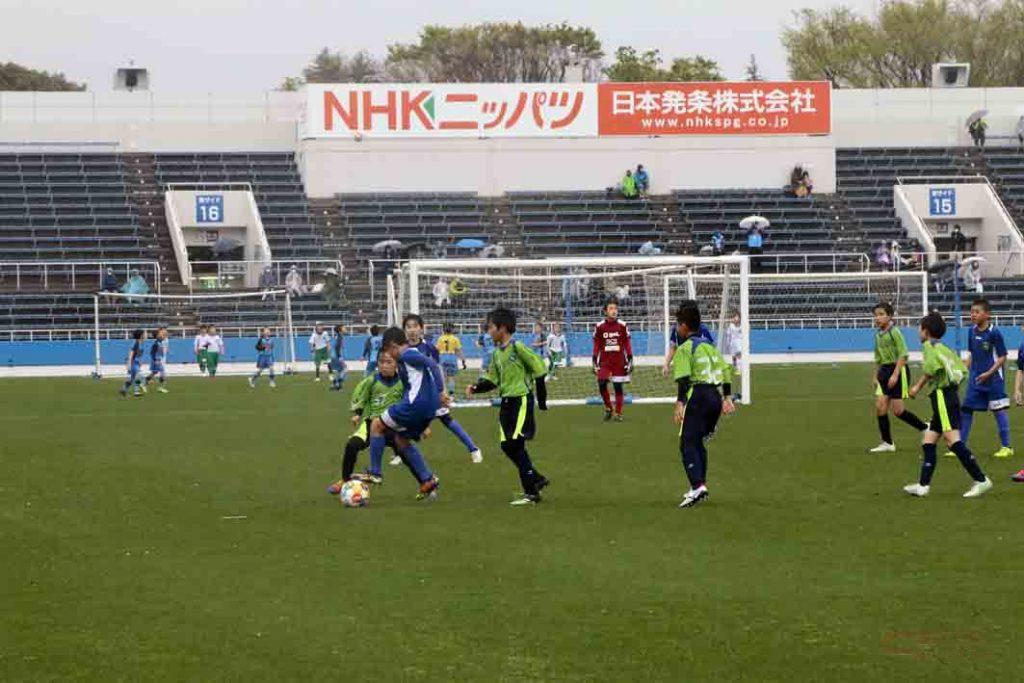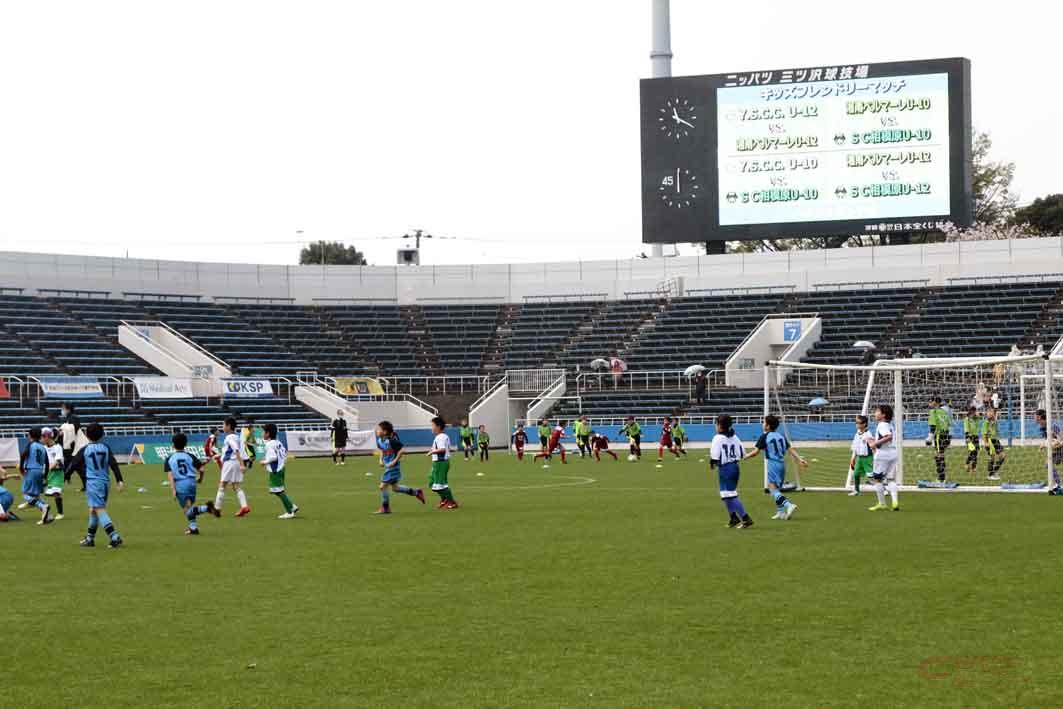 J3戦開始前には、同社がスポンサードする3チームのアカデミーに通う子どもたち(12歳以下、10歳以下)で構成されたチームによるエキジビションマッチが開催された。あいにく、試合中はこの日で最も雨が激しく降る時間帯だったが、Jリーガー候補生達がはつらつとしたプレーを見せてくれた。