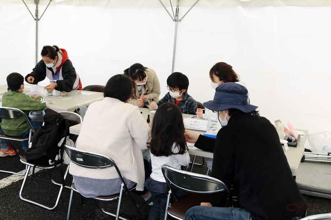 この他、事前申し込みをした小学生を対象に、Jリーグ公式戦の運営に関わる“お仕事体験”も行われた。抽選により8名が登録選手紹介アナウンス(2名)や、Y.S.C.C.グッズ販売(4名)、関係者入口の受付業務(2名)を体験。さらに、子ども向けにドライブシミュレーターを用いたくるま運転体験や、家族で一緒に楽しめる桜貝アクセサリー作りも行われた。