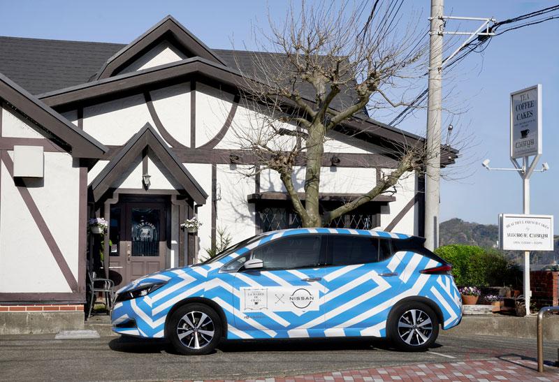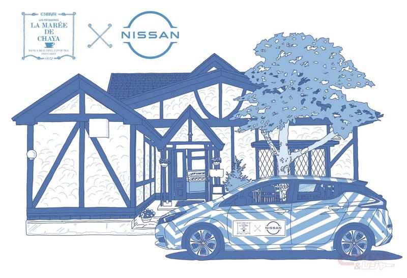 また日産は、今回のコラボレーションを記念し、限定ポストカードに描いているデザインと同様のデコレーションを施した「リーフ」のラッピングカーを製作。同車は、4月2日から4月23日まで本社ギャラリーで展示され、その後はパティスリー ラ・マーレ・ド・チャヤの営業車としての活用を予定している。