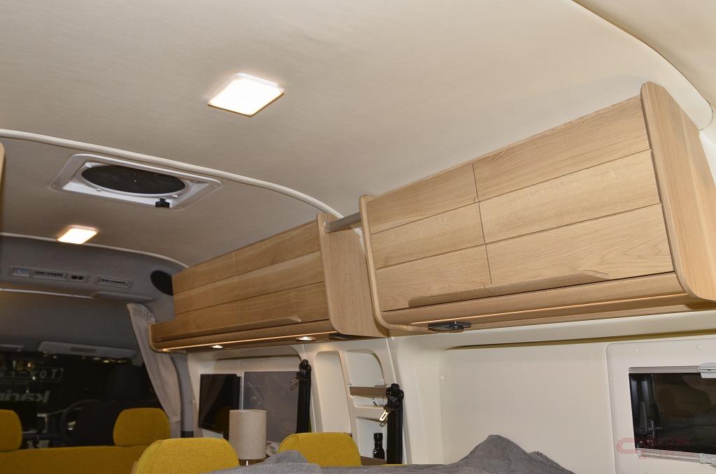 カリモクバーデンは、2019年に発売された限定モデルの第二弾。家具はブラウン&ナチュラルの2トーン仕様となり、素材には、住宅用よりも高い温度環境にさらされる自動車用家具として多くのテストを行い、耐久性を確かめた高品質かつ木目の美しいナラ材(オーク)を採用した。