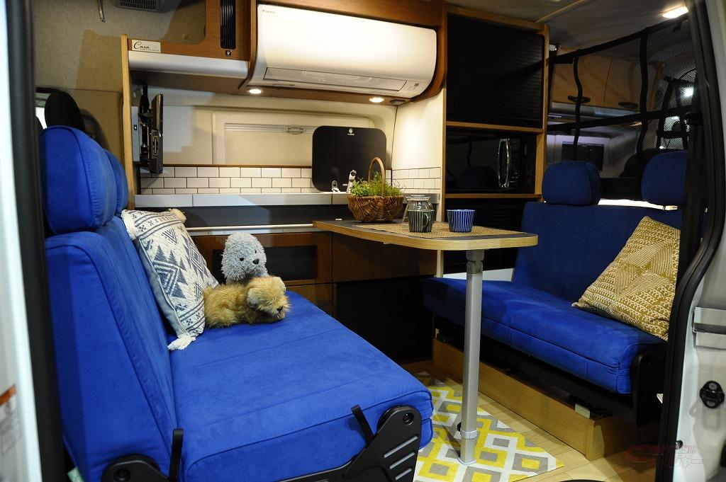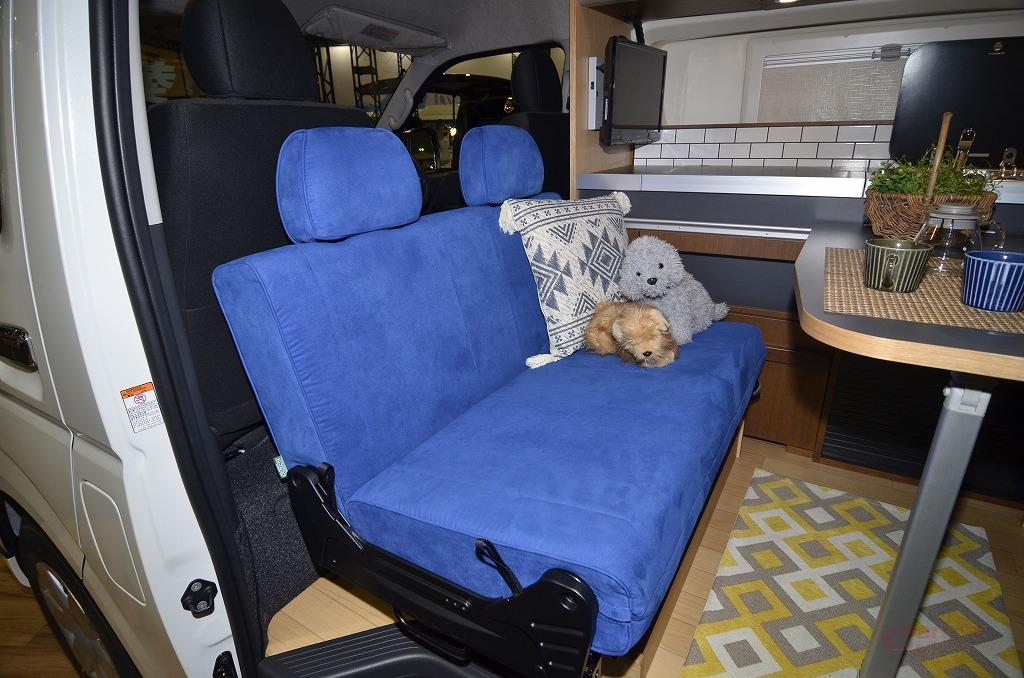 ベルゲンは、ペットとの旅を想定した新モデル。鮮やかな青が目を引くシート生地は、ペットの爪などが引っかからないように工夫され、撥水性の高さも備えることで掃除をしやすくした。