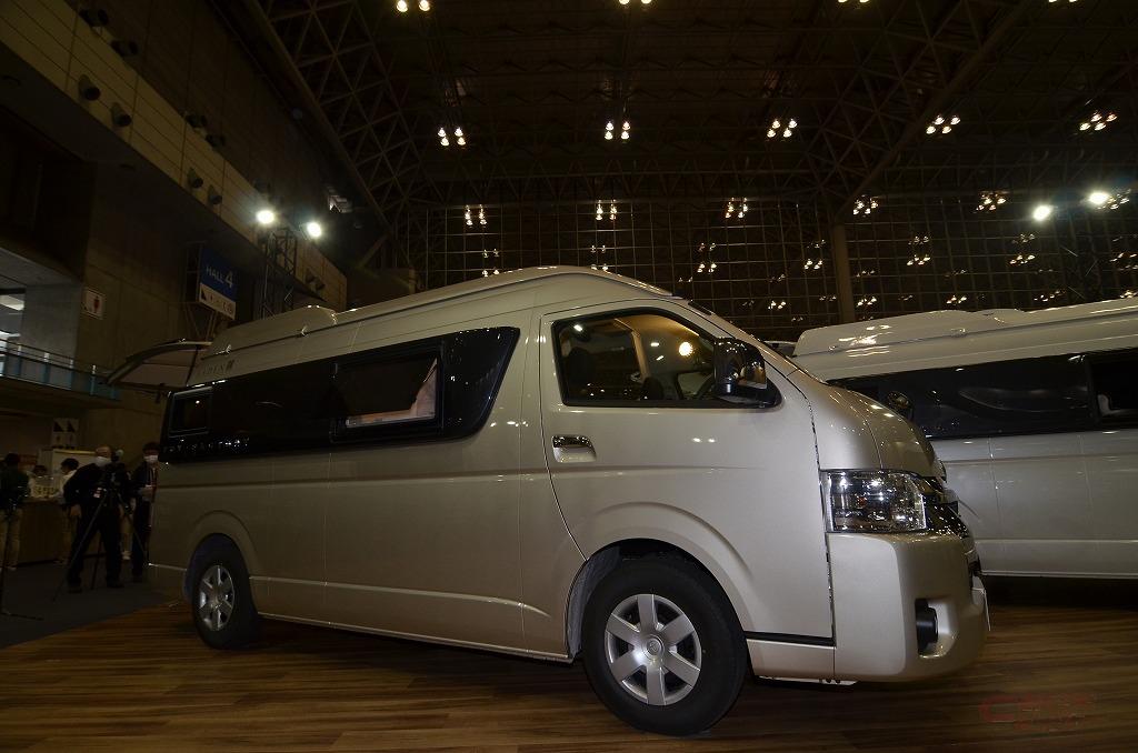 バンコン(バンコンバージョン)国内シェアトップを誇るトイファクトリーは、今回の「ジャパンキャンピングカーショー2021」で、完全限定生産モデル「カリモクバーデン」、ペット旅仕様の新型「ベルゲン」、着脱式シェルフ「モビリティユニット・ハコハコ」を初公開した。