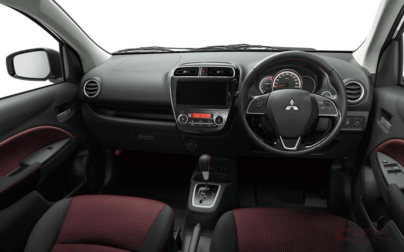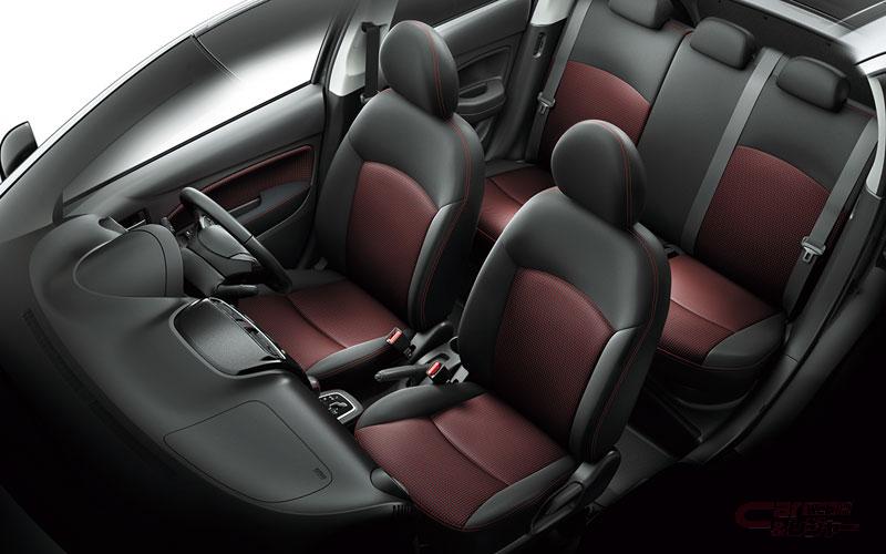 - ブラック&レッドファブリックの専用シート生地を採用し、レッドステッチをシートや本革巻きステアリングホイール(メッキ&ピアノブラックアクセント)、本革巻きシフトノブ、ドアアームレストにアクセントとして施すことで、よりスポーティな室内空間とした。