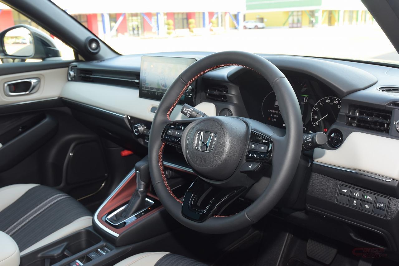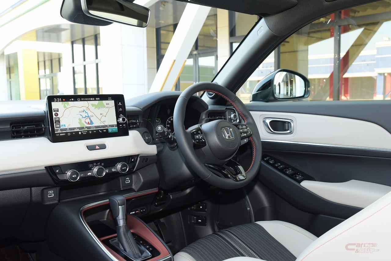 2代目となる新型ヴェゼルは、同社独自のセンタータンクレイアウトを踏襲し、コンパクトなボディサイズと多彩なシートアレンジはそのままに、より力強く美しいプロポーションとしたのが特徴。乗る人すべてが快適に移動できるよう、ゆとりある空間を追求し、クラスの平均を超える広さと心地よさを追求している。またグレード構成はハイブリッド(e:HEV)を主軸としているのも特徴となっている。