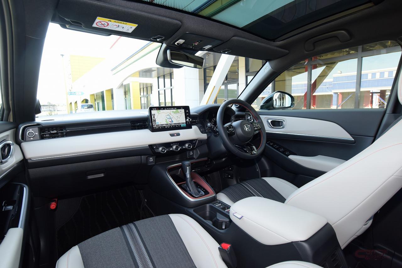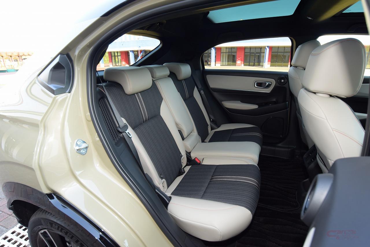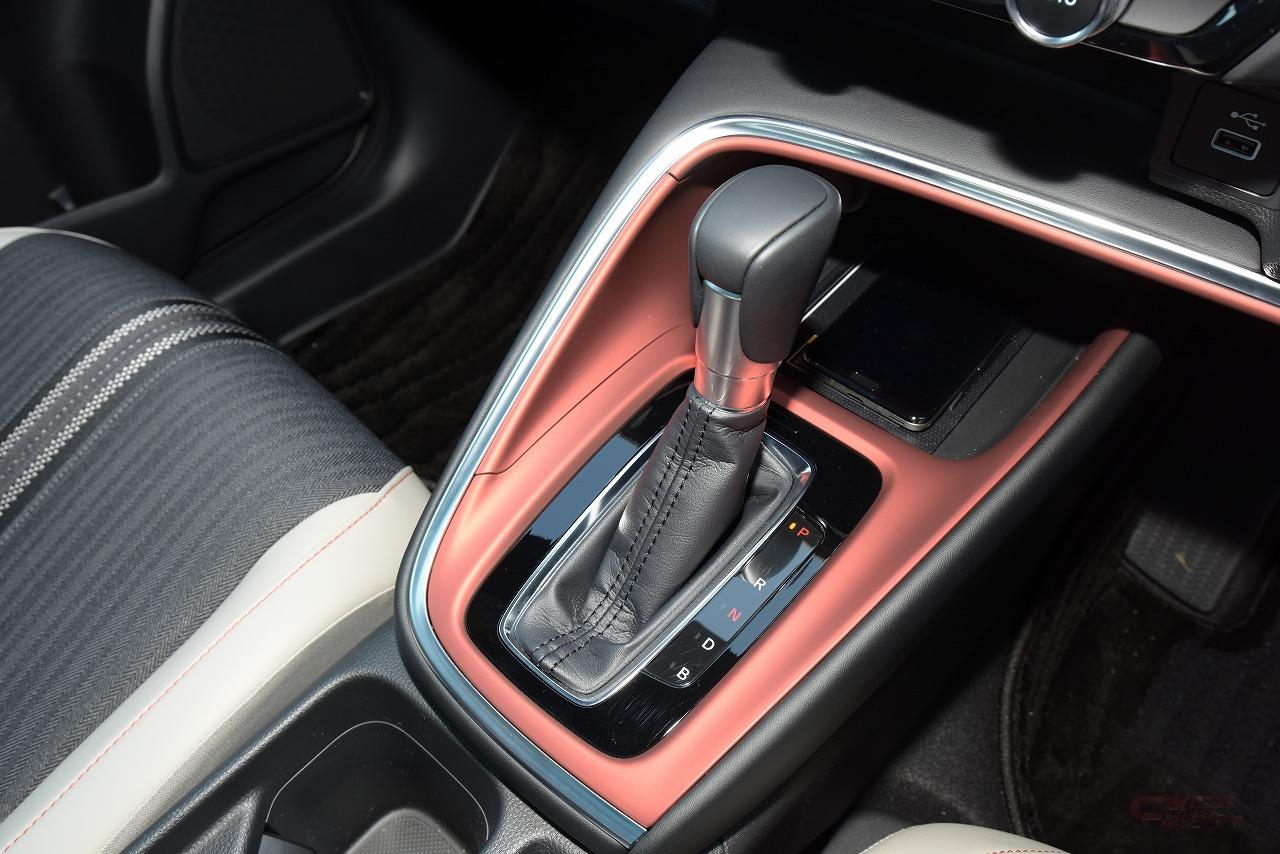 ガソリンエンジン(最高出力118PS/最大トルク142Nm)に組み合わされるCVTは、フィット用のものをさらにローレシオ化。発進はスムーズで扱いやすく、加速はリニアで爽快感が得られるようになった。