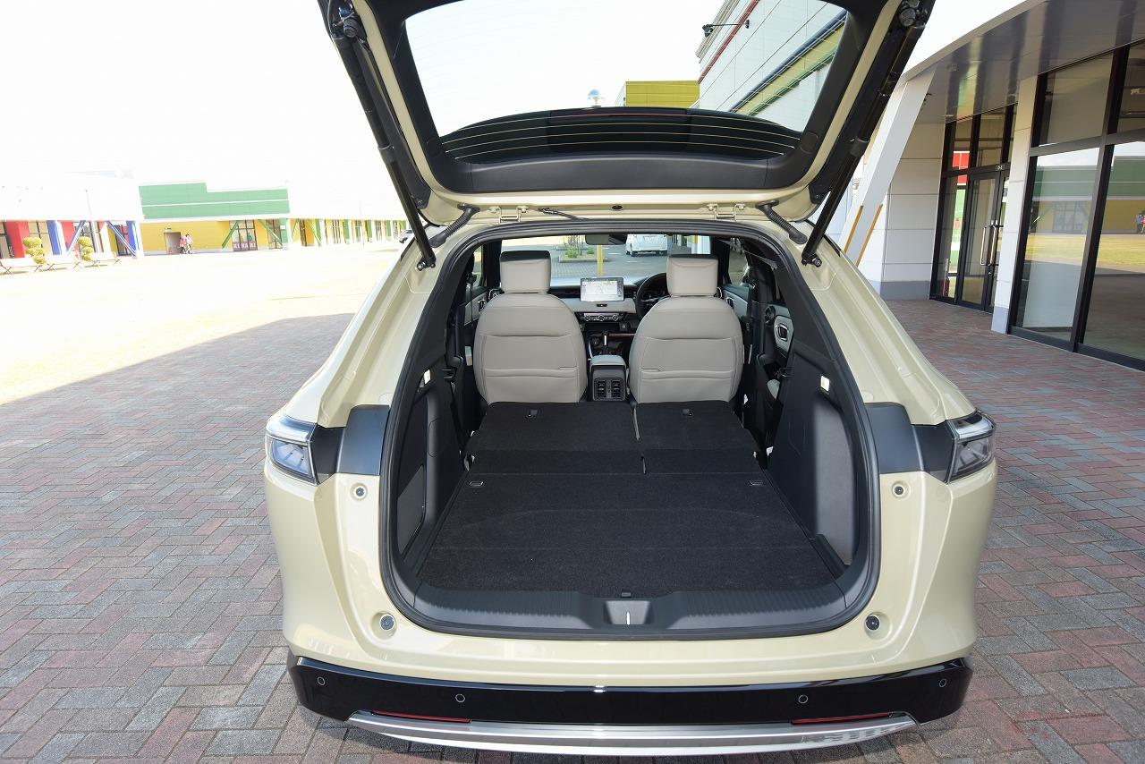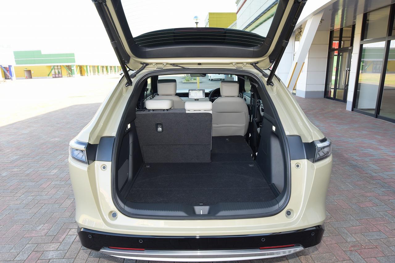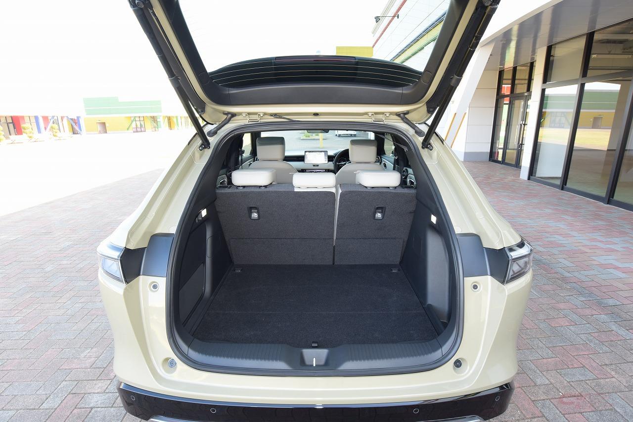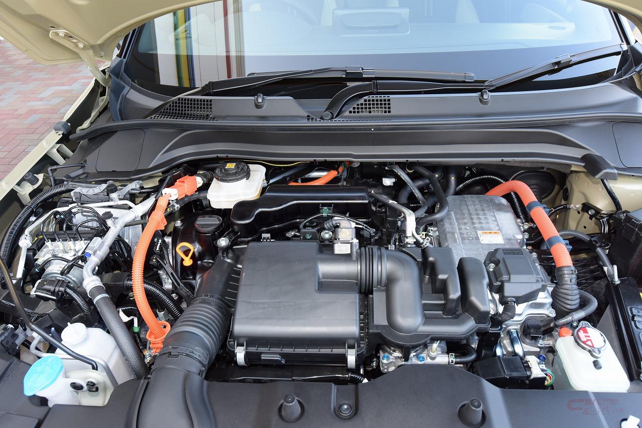 e:HEVはバッテリーのセル数を増やしモーターの出力を上げることで、SUVらしい力強い走りを実現。小型化されたパワーコントロールユニットを荷室下からエンジンルームへ移し、MM(マン・マキシマム/メカ・ミニマム)思想に基づいた広い荷室空間との両立を実現した。