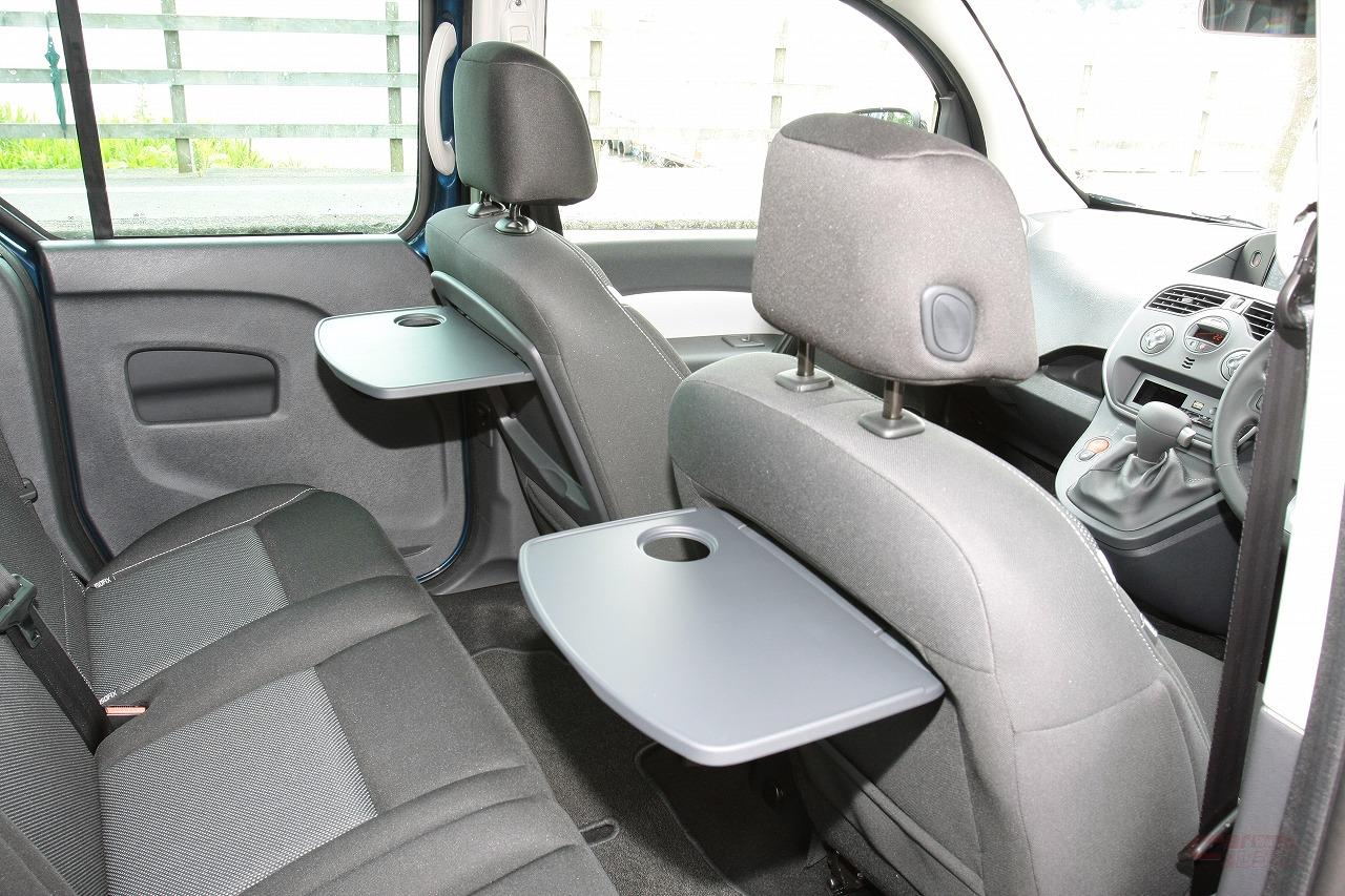 輸入車としては珍しいスライドドアを備えるほか、後席は足元だけでなく、車高を生かした広々とした空間に、余裕のある収納スペースが確保されている。とくに運転席と助手席の後ろに設えられたシートバックテーブルは、小さい子どもがいるファミリーには重宝できそうな装備だ。2列目シートを倒せば広大なスペースが生まれ、マットなどを敷けば車中泊も余裕でこなすだけでなく、トランスポーターとしての利便性も高い。