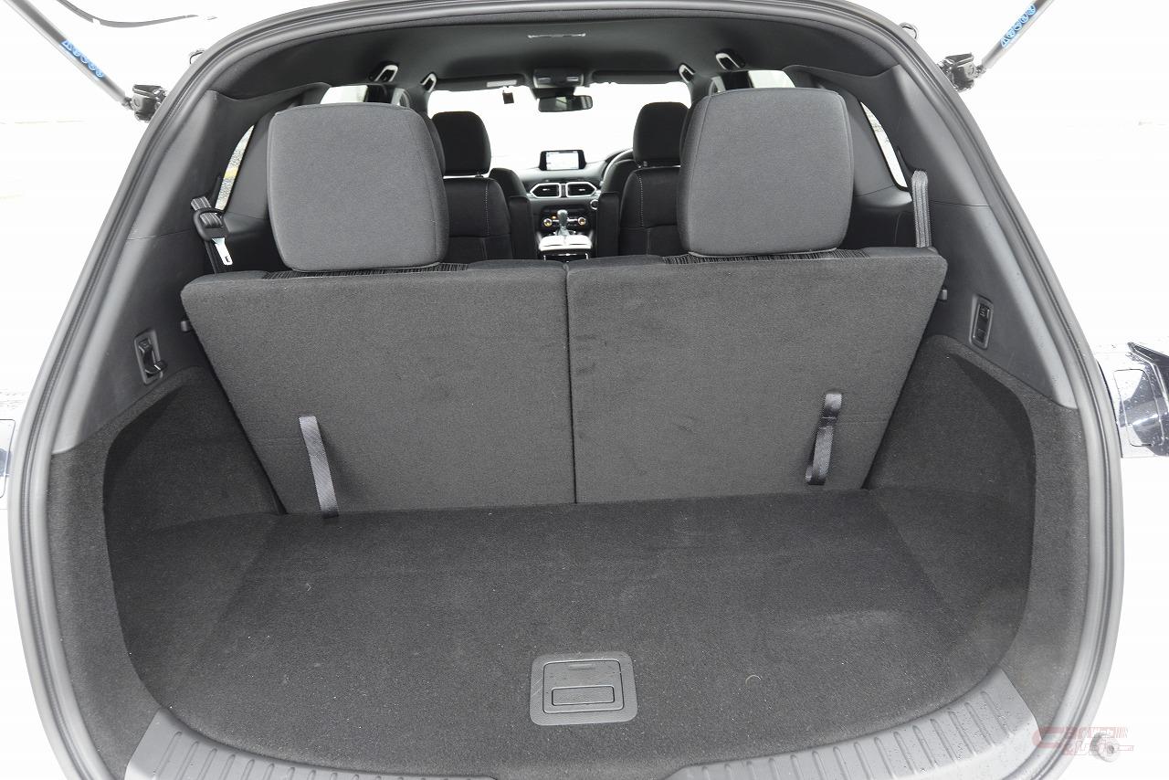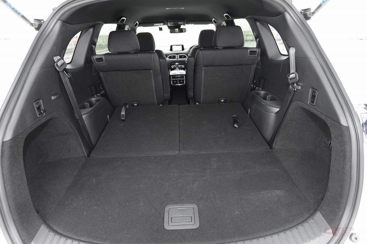 2列目シートは、3人掛けベンチシート(7人乗り)と独立したキャプテンシート(6人乗り)を設定し、3列目を使用した状態で239L、格納すると572Lの荷室容量を実現。3列目は床下に格納されるので床面がほぼフルフラットになり、使い勝手も高い。2列目の格納時の床面は多少の段差が生じるものの、格納することで約2mの奥行きが生まれ、長尺物の収納をはじめ、マットレスなどの工夫次第では車中泊も問題なくできそうなスペースとなっている。そもそもCX-8はマツダがミニバンから撤退するにあたり、その代替として登場したモデルだけあって、今回紹介するモデルの中では一番実用的と言える。