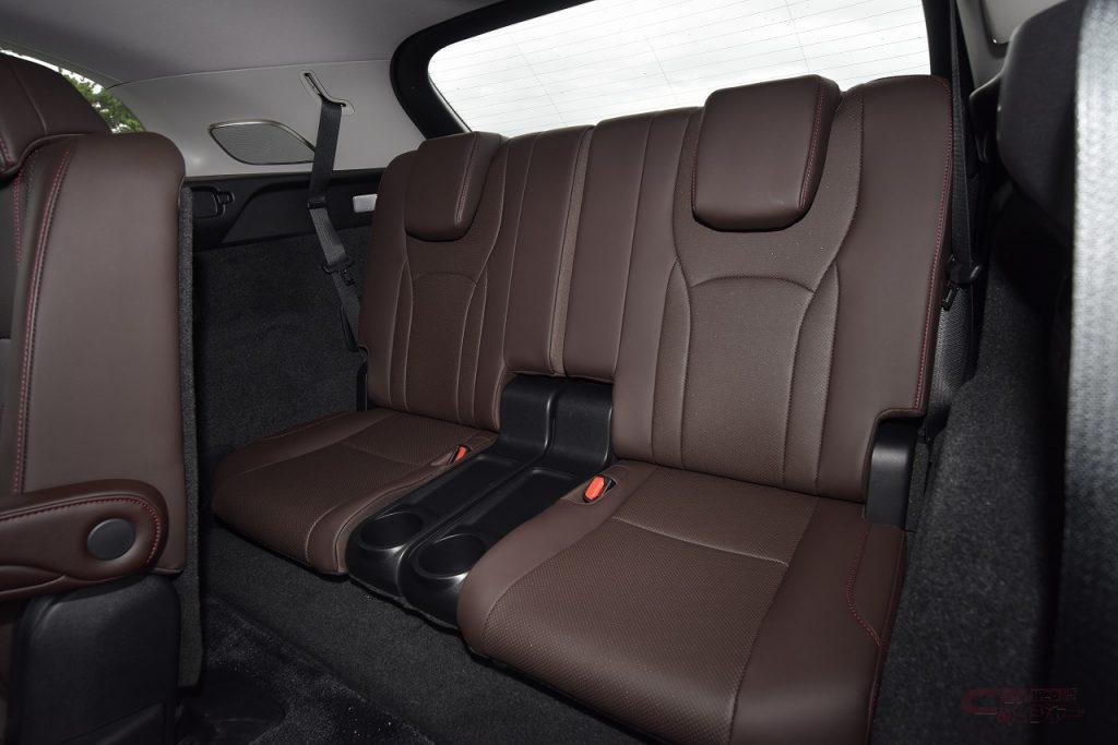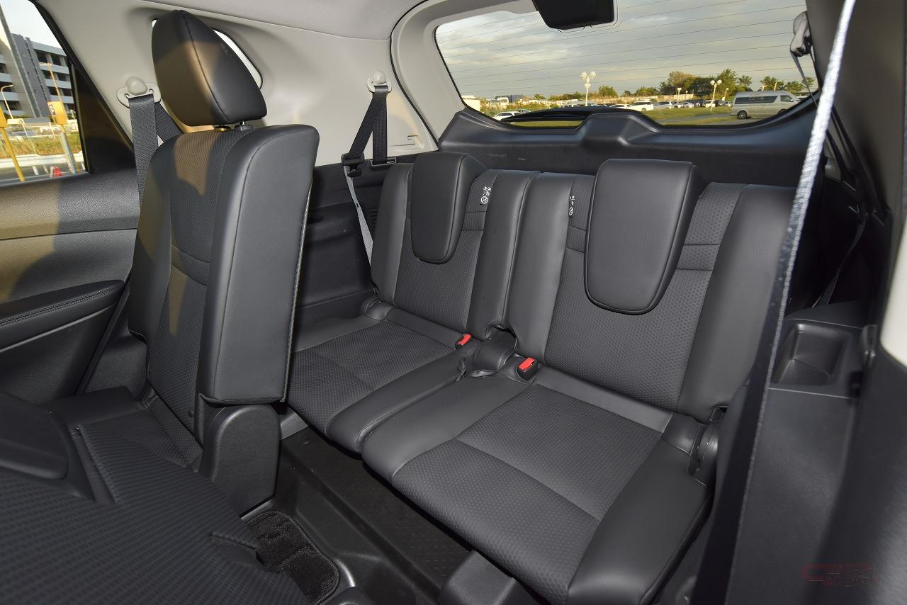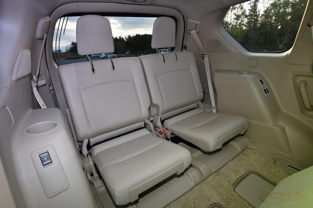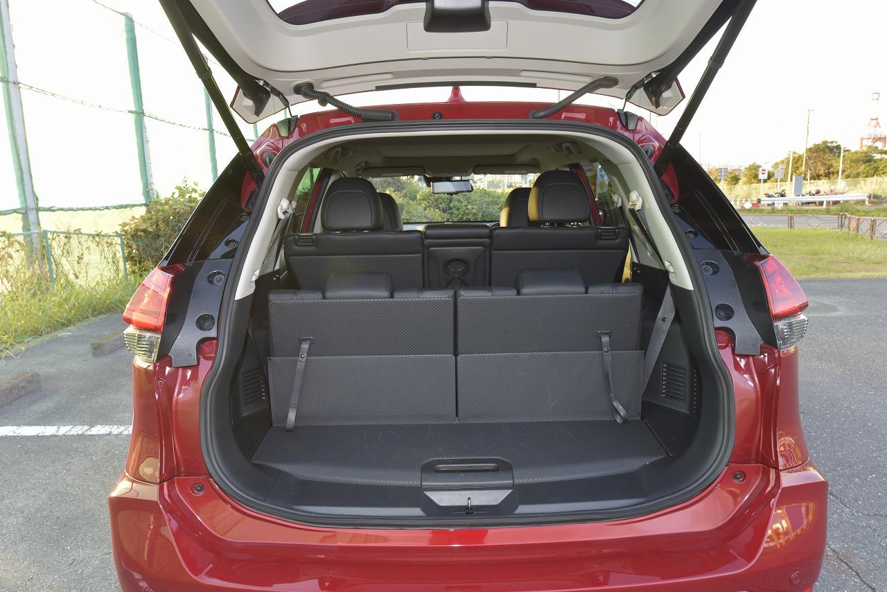 ガソリンエンジンモデルの20Xiと、AUTECH i Packageに3列シート仕様車を設定。しかし全長は2列シート仕様車と同じで、3列目に大人が座るには窮屈な印象だ。シートの座面や背もたれもフラットなため座り心地は良くないが、床下に格納可能で、フラットな荷室にできる利点も持つ。