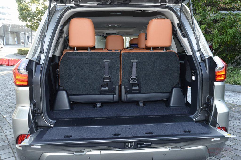 3列シート仕様車の室内長は2台とも2520mm(LXは2760mm)であるが、ランドクルーザーとLXの3列目は跳ね上げ、プラドは床下格納と、3列目の格納方式が異なるが、いずれも3列目を使った時の荷室は狭い。