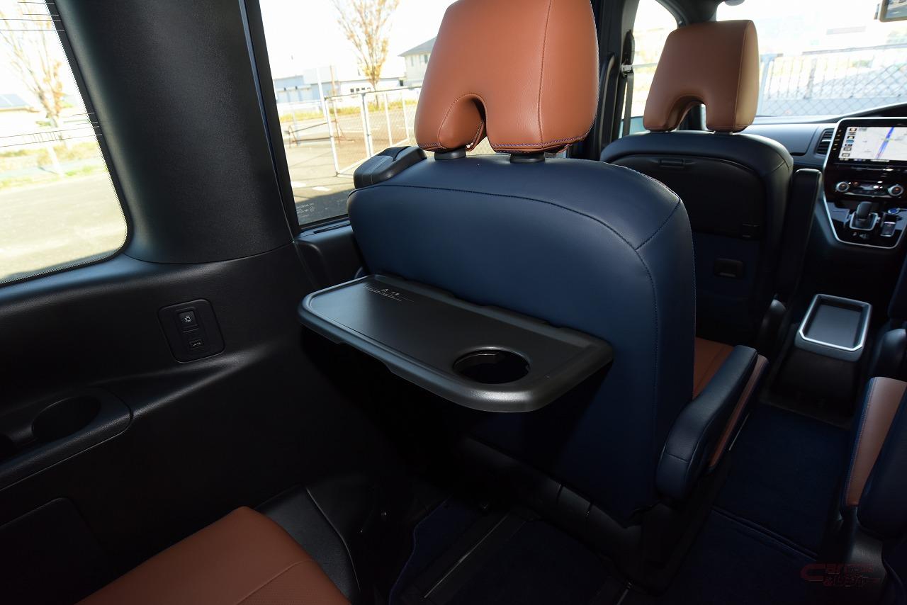 エアコンは各車フロントシートと独立して調節が可能。2列目の窓にはサンシェード、シートバックにはテーブルやUSB充電口も備えられており、利便性も高いレベルにある。なお、セレナのみ2列目シートバックにテーブルが装備されており、3列目使用時でもテーブルを使える。