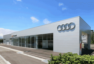 新店舗は、旧店舗から300m程離れた場所に移転し、約2000㎡の敷地に2階建ての建屋を新築。マンション併設型だった旧店舗から広さを約3倍拡大し、ショールーム、サービス工場等の拡張を実現した。加えて、旧店舗では慢性的な駐車場不足となっていたが、60台収容可能な屋上駐車場も新たに設置。自走式のスロープを設け、素早く車両の入れ替えもできるようにしている。