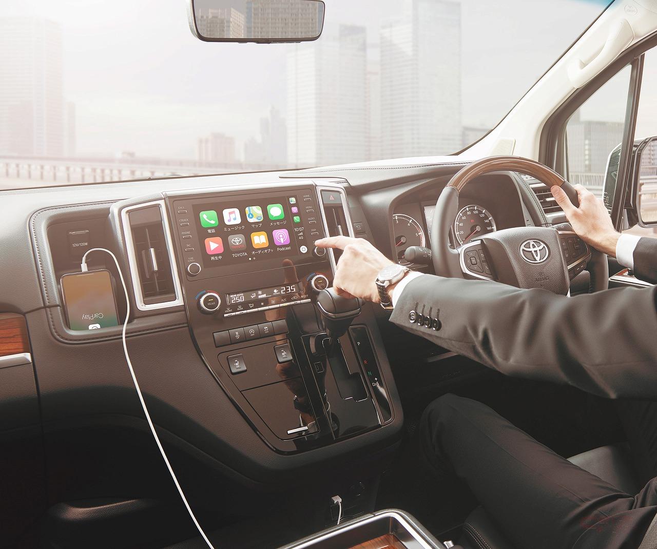 2019年のマイナーチェンジと同時に装備され、8インチディスプレイ+6スピーカーが標準搭載。2020年8月の改良でオーディオレス仕様が選択できるようになったが、CD・DVDデッキのオプションは設定されていない。これらを車内で楽しむには、レス仕様を選択して、CD・DVD再生に対応したナビを装着する必要がある。