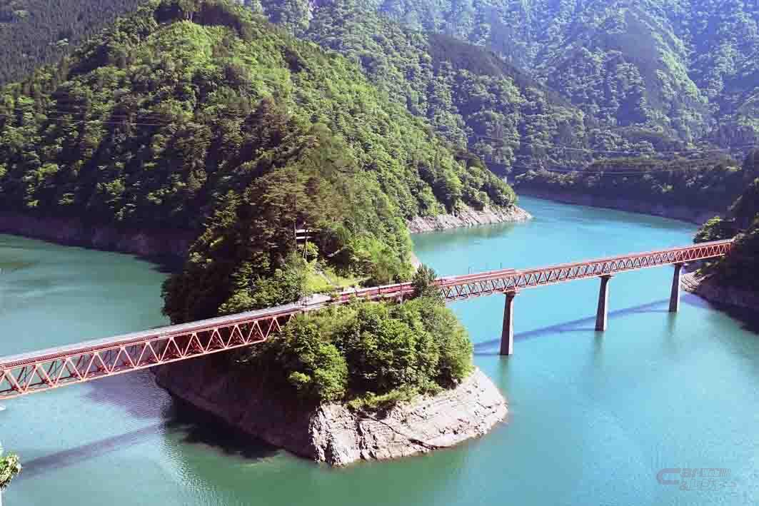 大井川鐡道井川線・長島ダム~アプトいちしろ間の1.5㎞は、日本で唯一のアプト式鉄道区間(線路間に歯形レールとアプト式電気機関車のラックホイールとをかみ合わせ、鉄道日本一の急勾配を安全確実に運転する方式)を採用している。